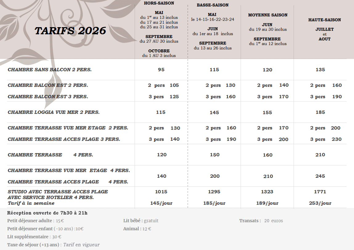 Le jeudi 1er Mai 2026, ouverture de l’Hôtel avec le service petit-déjeuner. Ouverture du Restaurant Le Jardin courant mai jusqu’à fin septembre 2026.